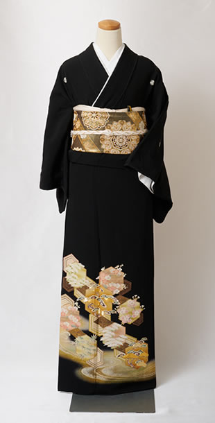 寿にふさわしい亀甲柄、上品な金加工に吉祥花が綺麗な極上の装いを。